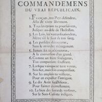La Révolution multiplie le recours à ces affichettes éphémères conçues comme de véritables outils pour fabriquer une nouvelle morale citoyenne et diffuser les valeurs d'un nouveau régime. Ce sont par exemple les Dix commandemens du Vrai Républicain imprimés en 1793, ou encore les affiches annonçant en lettres majuscules « Ici on s'honore du titre de citoyen » collées dans toutes « salles de spectacles, bals, ateliers, manufactures, boutiques de Limonadiers, Marchands de Vins, Traiteurs, Restaurateurs, Maisons de jeux ».